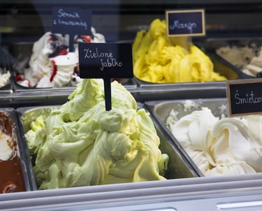 Świeżo dostarczane lody, w przeróżnych smakach.